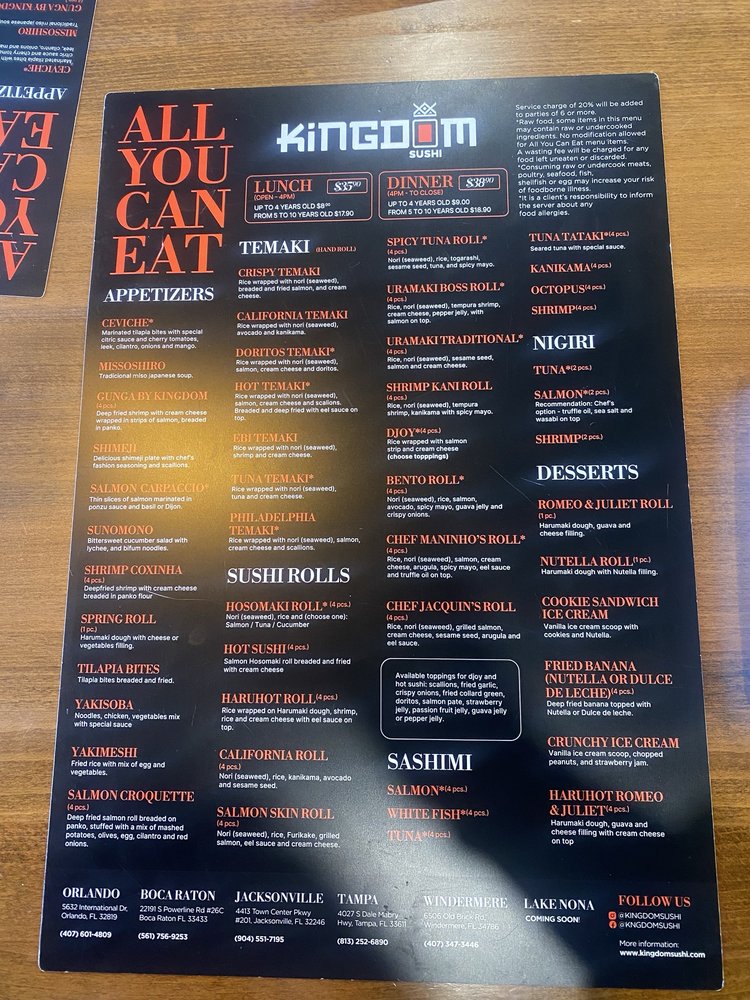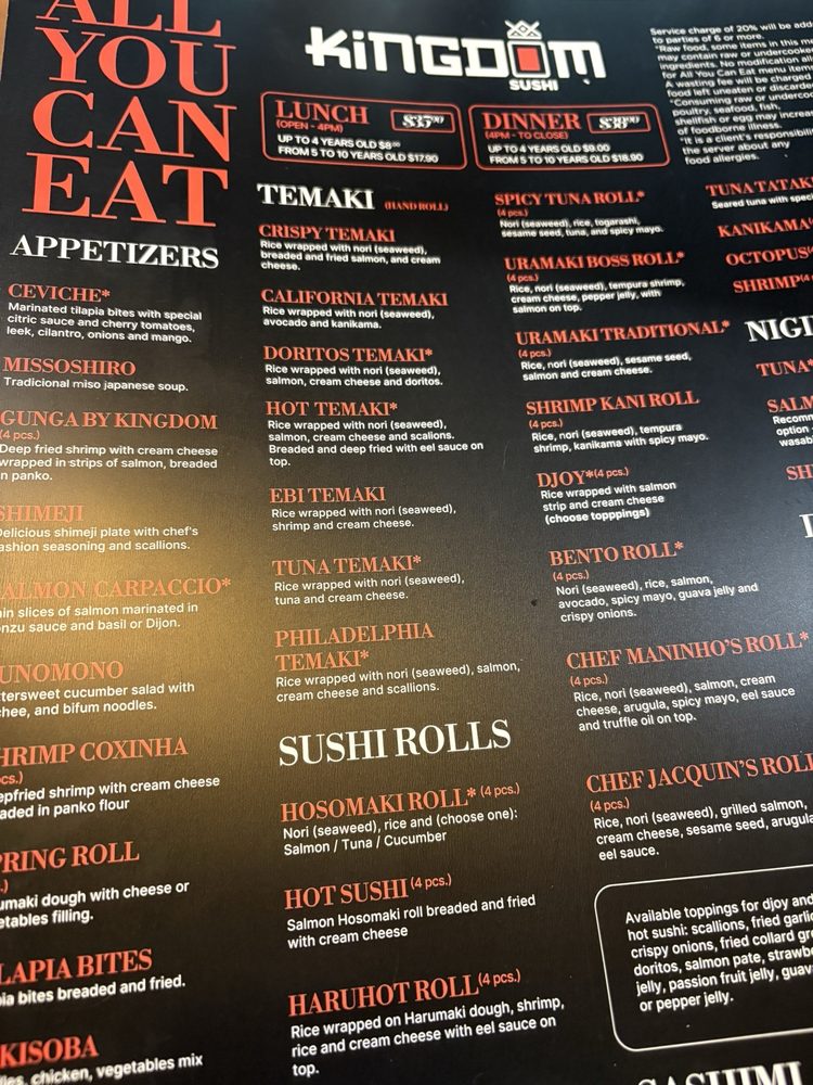 Welcome to Kingdom Sushi Boca Raton, where Brazilian flair meets Japanese tradition in a vibrant fusion of flavor and creativity. Nestled at 22191 Powerline Rd, this establishment offers a unique All You Can Eat (AYCE) experience that allows diners to indulge in smaller portions, sampling everything from Ebi Temaki to exquisite rolls like the Spicy Tuna and California Roll, all priced affordably.