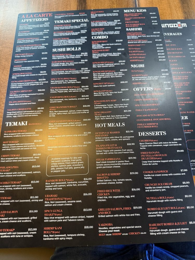 Each dish is a testament to quality, from the juicy grilled salmon to flavorful chicken fried rice. What sets Kingdom Sushi apart is their innovative ingredients and presentation; imagine sushi served with a twist, featuring guava and caramel banana!